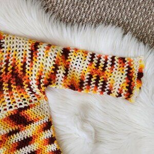 Vintage 1970s Girl Orange Crochet Crop Sweater Boho Bohemian 70s Handmade