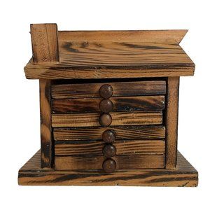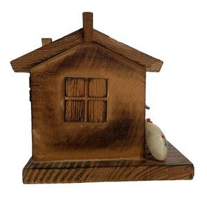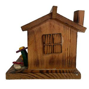 Vintage 1970s Hand Made Folk Art Wood Log Cabin Coasters Set Taiwan Rustic Bird