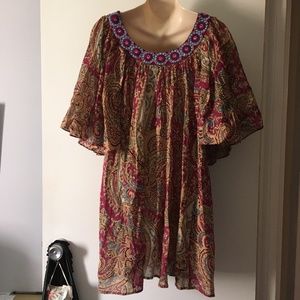 Vintage 1970's Indian Cotton Flutter Wide Sleeve Mini Dress M / L