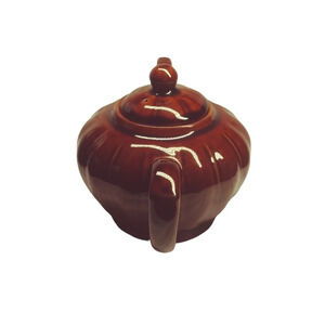 1970s Large Vintage Brown Paneled Primitive Style Teapot