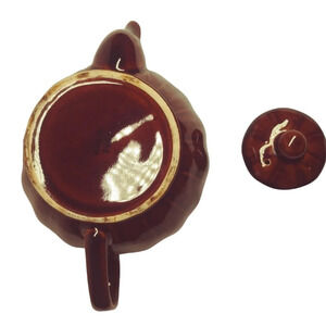 Vintage 1970s Large Brown Paneled Primitive Style Teapot