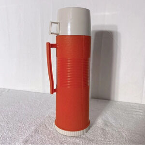 Vintage 1970s MCM Thermos Brand Orange Plastic Glass Vacuum Insulated Bottle