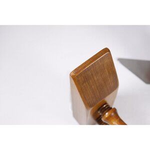 A pair of warm toned wooden book ends, I believe these are Maple. They are shaped like a vintage wooden vice, a tool used in wood working or furniture repairs. The little wooden plate underneath slips under your books to hold them in place. Perfect for that mid-century bookcase or for simply displaying a few DIY related books in your man cave or on the mantel at home.