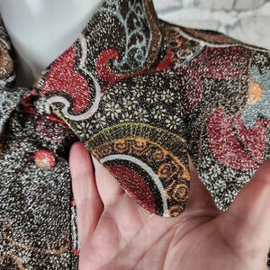 Vintage 1970s Mod Button Front Blouse Swirly Pattern Shimmer Black Brown No Size