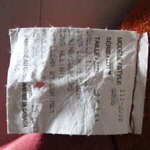 A 1970's vintage unlabelled burnt orange suede mini skirt, with reddish brown satin lining. The zipper and snap are metal. The skirt measures 27.5" waist, 38" hips, 19.5" in length.