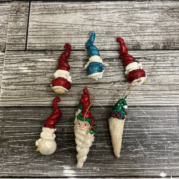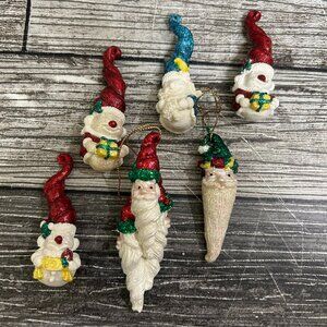 Vintage 1970s Plaster Chalkware Elf Santa Claus Christmas Ornament Set of 6