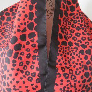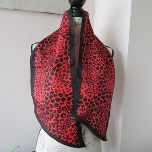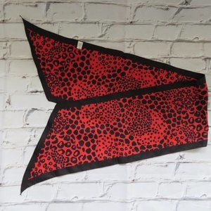 Beautiful vintage 1970s red and black animal print scarf. This scarf long and narrow perfect for tying around one's hair which was popular in the 70s although this one hadn't been worn that way.