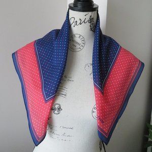 Vintage 1970s Red, Blue & White Polka Dot Square Scarf