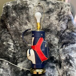 Vintage 1970's Red White Blue Golf Club Bag Table Lamp
