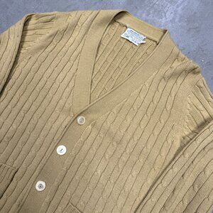 Vintage 1970s Sears Cable Knit Cardigan Sweater Yellow Medium
