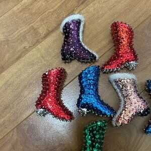 Vintage 1970s Sequin & Pin Christmas Boot Ornament Lot of 7