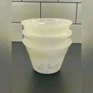 Vintage 1970s Set of 3 Milk Glass Indopal Ramekins / Custard Cups Pastel Flowers