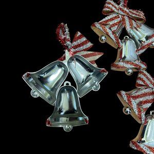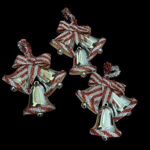 Vintage 1970s Silver Plastic Tinsel Bell Hanging Ornament Plaque Set of 3