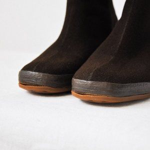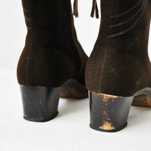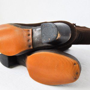 Condition: In very good vintage condition! The wool tops are in amazing shape for their age. One tiny flat spot on the back right heel, back wooden heels have some wear, dry glue where the rubber soles were installed, the tips of the sole are subtly lifting, however, there are nails holding in the sole so it won't budge! See photos for details.
