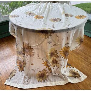 Vintage 1970s cream curtain, large brown, orange flowers, pleated, price for 1