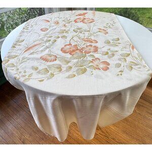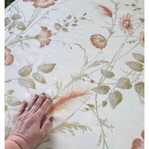 Vintage 1970s cream curtain, large orange flowers with greenery, rod header