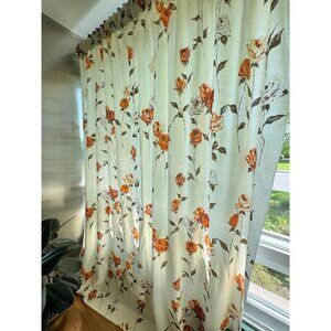 Stunning vintage 70s curtain, pleated. 2 panels are available, price is for each. Very long panel, with large orange roses and long brown stems, over a creamy beige background. The material has a surprisingly good weight, with excellent draping. Once in front of a window, it is light filtering, not quite sheer, with a gorgeous glow. Would look amazing in a living room or a bedroom. In excellent condition with little visible wear, only noted issue is a very tiny greyish spot on the bottom hem. Although the panels were laundered, it was not spot cleaned as I did not notice it before taking the pictures. It is not really visible and could not be permanent. Please see last picture for accuracy. This panel has a pleating tape and can be hung using pleating hooks, as shown in pictures (not included), or curtain clips. Please note that the width is measured flat and once the pleats are made, it will make it narrower. You can use more or less hooks to make it more or less narrow/pleated. measurements are, for each panel: 84" wide x 96" long This item has been laundered using scent free detergent and without fabric softener. ***************************** VINTAGE CONDITION: All my items are vintage and have been carefully curated. However, as they were previously loved, they may have some wear. I do my best to accurately disclose and photograph in the listings. Please contact me if you have any questions or concerns.