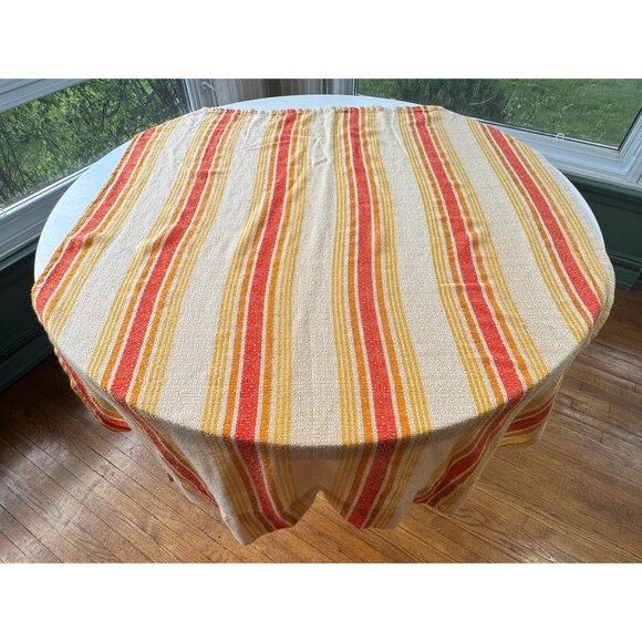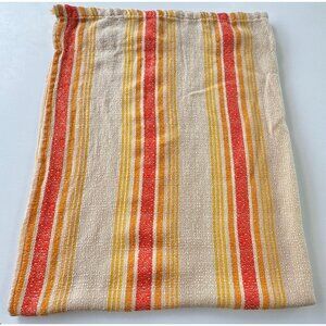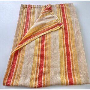Vintage 1970s curtain, beige, yellow orange stripes, rod header