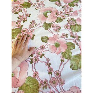 Vintage 1970s curtain, dramatic oversized pink flowers, sheer, rod heading panel
