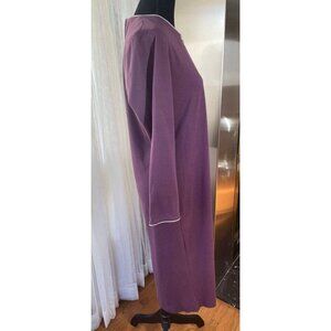 Gorgeous purple A line dress from the70s, by Mr Edwards, made in Canada. Pretty details such as light grey trim and buttons, a side slit, long sleeves. It has loops for a belt, not included. Would make a great work dress or the perfect outfit for any event.