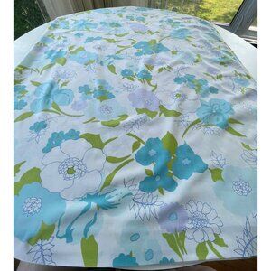 Original vintage 70s bed sheet, flat. Lovely flower pattern, blue and white with green leaves.