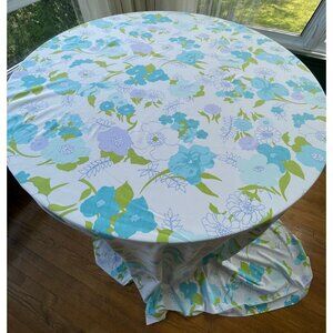 Vintage 1970s flat/top sheet, blue purple and green floral, twin size bed
