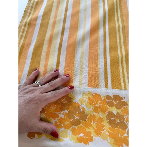 Stunning vintage 70s flat/top sheet, yellow and orange stripes with a floral band. Twin Size