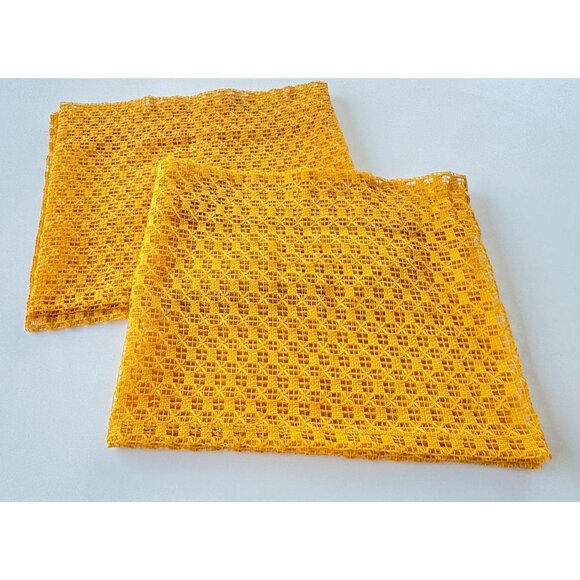 Vintage valance, golden yellow mesh with open weave pattern. Price is for one valance, 2 are available. Please see my other listings for the second valance. Lightweight and in excellent condition, very little wear, as with any woven fabric, there may be minor pulls. Please see pictures for accuracy. measurements are, per valance: 55" wide x 11.5" long rod pocket is 1.5" wide, would fit a smaller size curtain rod. This item has been laundered using scent free detergent and without fabric softener. ***************************** VINTAGE CONDITION: All my items are vintage and have been carefully curated. However, as they were previously loved, they may have some wear. I do my best to accurately disclose and photograph in the listings. Please contact me if you have any questions or concerns.