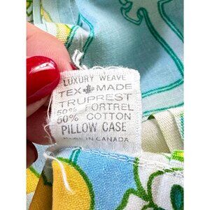 Groovy 70s pillowcase, white blue and yellow geometric and floral pattern. Would make quite a vintage statement in an 70s bedroom decor!