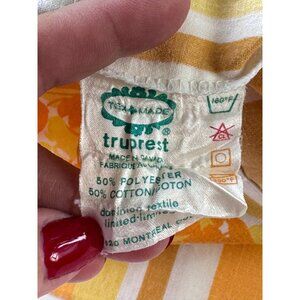 Brand is Tru-Prest, by Dominion Textiles, made in Canada, 2 tones orange stripes and flowers.