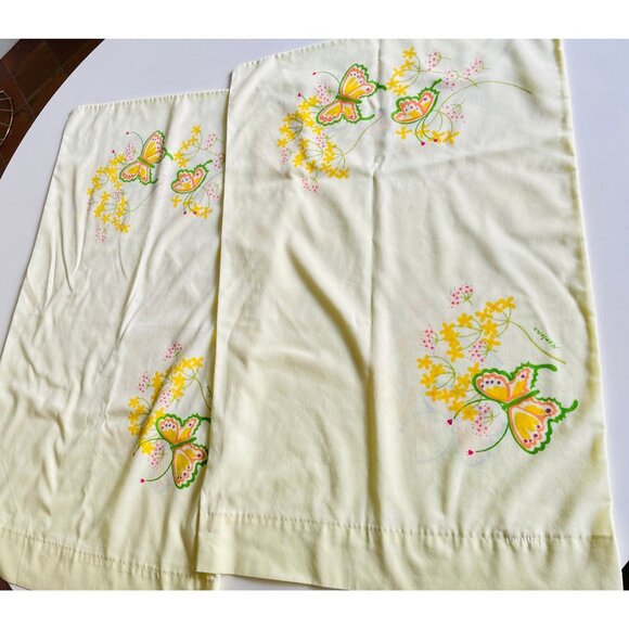 Stunning set of 70s pillowcases. yellow and orange butterflies
