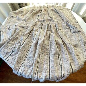 Vintage 1970s pleated curtains, beige & blue striped, pair of woven panels