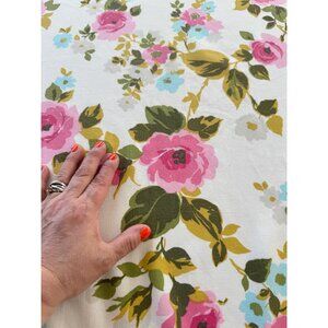 Vintage 1970s top/ flat sheet, pink, blue and green floral, twin size bed