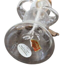 This delicate vintage oil lamp by Lefton features a hand-blown clear glass angel with gold-tone wings and halo. A wick extends from the top, making it both decorative and functional. At 5 inches tall, it’s a charming display piece—perfect for collectors of vintage angels, glassware, or Lefton treasures.