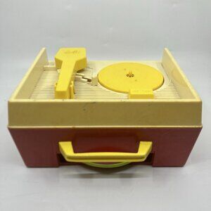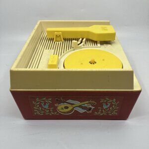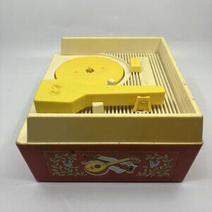 Vintage 1971 Fisher Price Kids Musical Wind Up Record Player Red Plastic Discs