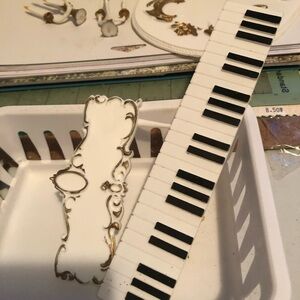 Vintage 1973 Wilton Grand Piano Cake includes Two aluminum pans shaped like a grand piano. Plastic accessories to decorate the cake, including candle holders. It is a work of art. Collectible. Please check pics.