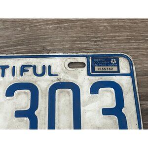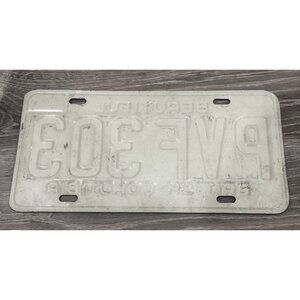 1974 BRITISH COLUMBIA License Plate. Plate no. PVF-303. WHITE plate with BLUE lettering and numbering. Measures approximately 12" by 6". This is a previously used license plate with wear typical from being used on a vehicle including paint loss, scuffs, scratches, rust, etc. Be sure to look at the photos as they indicate the condition of the plate. Great collectible!