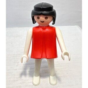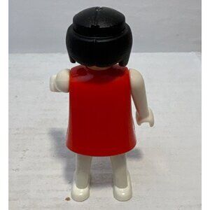 Vintage 1974 Geobra Playmobil Figure In Red Outfit With Miniature Wooden Rocking