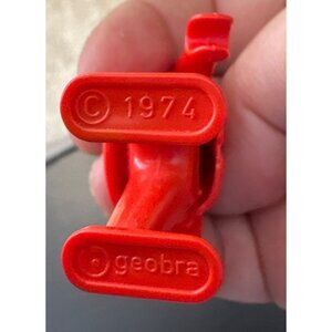 This set of vintage 1974 Playmobil figures by Geobra offers timeless appeal for collectors. Featuring bright red and yellow outfits, these figures showcase classic design and craftsmanship, maintaining nostalgic value for enthusiasts.