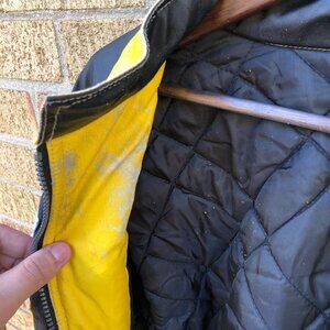 Note the date is an estimate of when my dad got this. Additionally since this is so old, alot of the leather is peeling, making it hard to wear practically... its a great piece to hang up on a wall or something. Additionally, there is no size tag on this piece, so included is a top to bottom measurement! This item may have wear/tear/stains/fading/paint chipping/alterations/missing buttons/missing zippers/fraying/bad smell/hair/cat hair (as I do have 2 cats)/shrinking & much more so please use the photos for reference to determine what flaws will be on the item as photos will provide a better description than I can! If there is a certain portion of the jacket that is important to you that is not visible in the photos, please ask for additional photos of this portion of the jacket PRIOR TO PURCHASING