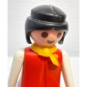 Vintage 1974 Playmobil Figure Red Outfit Black Hair Yellow Scarf Watering Can