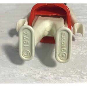 This vintage Playmobil figure from 1974 loves to chill in its classic red outfit. It's perfect for adding some retro vibes to your collection.
