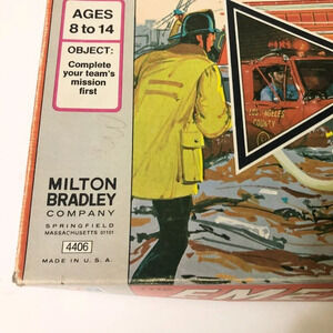 This board game is pre-owned and in used condition. It is missing 1 truck playing piece, it comes with 3. It comes with 24 Emergency cards and 8 Hospital cards. The box is damaged, it has tears, dents and stains. The playing board has some stains, creases and wear to it. The spinning wheel cardboard is dented. The cards have some stains as well. Please see all photos for exact game.