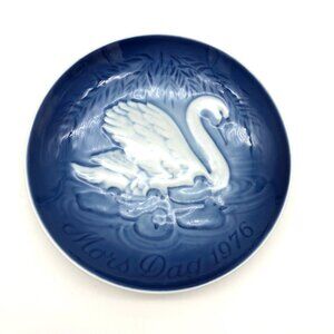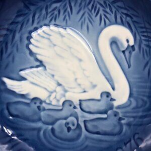 Vintage 1976 porcelain Mors Dag Mother's Day plate with a mother swan and her ducklings.