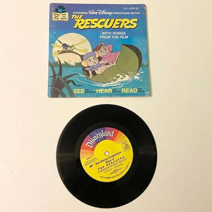 Vintage 1977 Disney The Rescuers With Songs From Film 7 Inch Record and Book