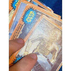 Explore the galaxy of nostalgia with this lot of Vintage 1977-1983 OPC Star Wars Series 5 Trading Cards, featuring the iconic duo R2-D2 and C-3PO. A must-have for any Star Wars aficionado, each card captures the essence of the beloved franchise, taking you back to the thrilling escapades in a galaxy far, far away.This collection also includes the ROTJ PR-MT, adding to the retro charm and collectability of this set. Perfect for those looking to relive the magic of the original Star Wars trilogy or for fans keen on completing their vintage card collection. Add these timeless treasures to your assortment and keep the spirit of adventure alive.