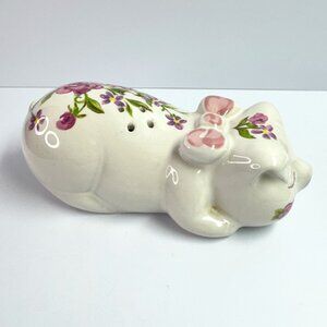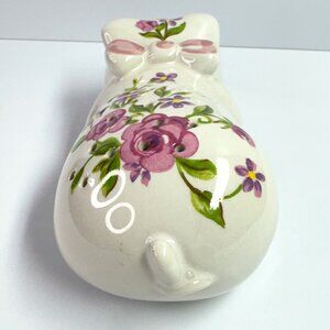 Vintage 1970s Avon Potpourri Pomander white porcelain Pig Piglet Figurine Pink Flowers