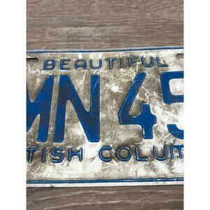 Vintage 1978 British Columbia License Plate Tag MMN-456 Blue w/ White
