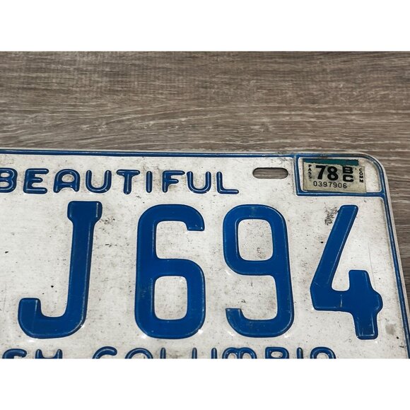 Vintage 1978 British Columbia License Plate Tag WLJ-694 Blue w/ White CANADA