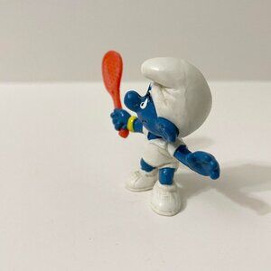 Vintage 1979 Smurfs Tennis Player Smurf with Racket Figurine